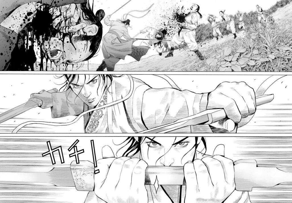 下の画像は劉備が二枚重ねの剣を振るうエンペラーズ本編の1頁です。